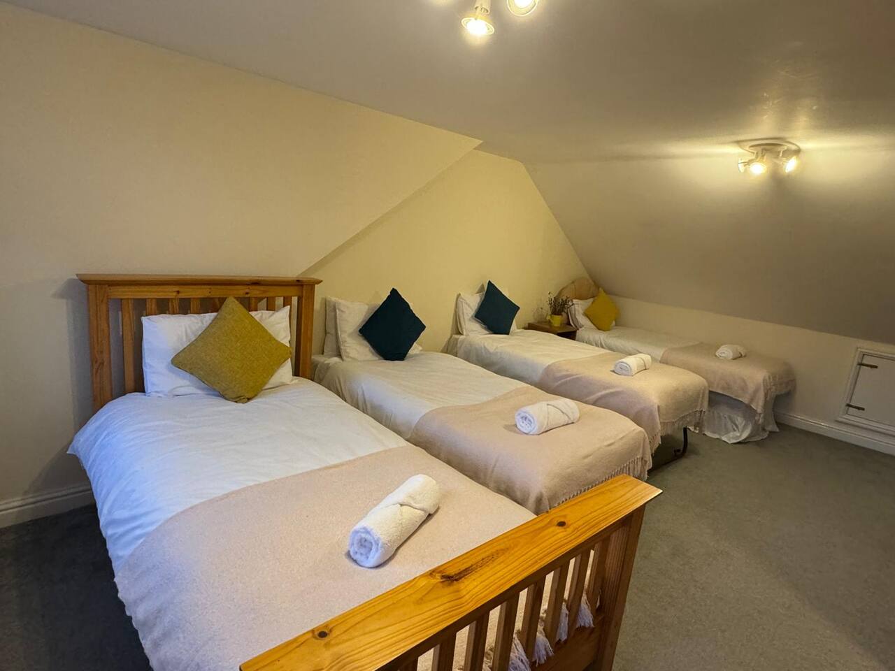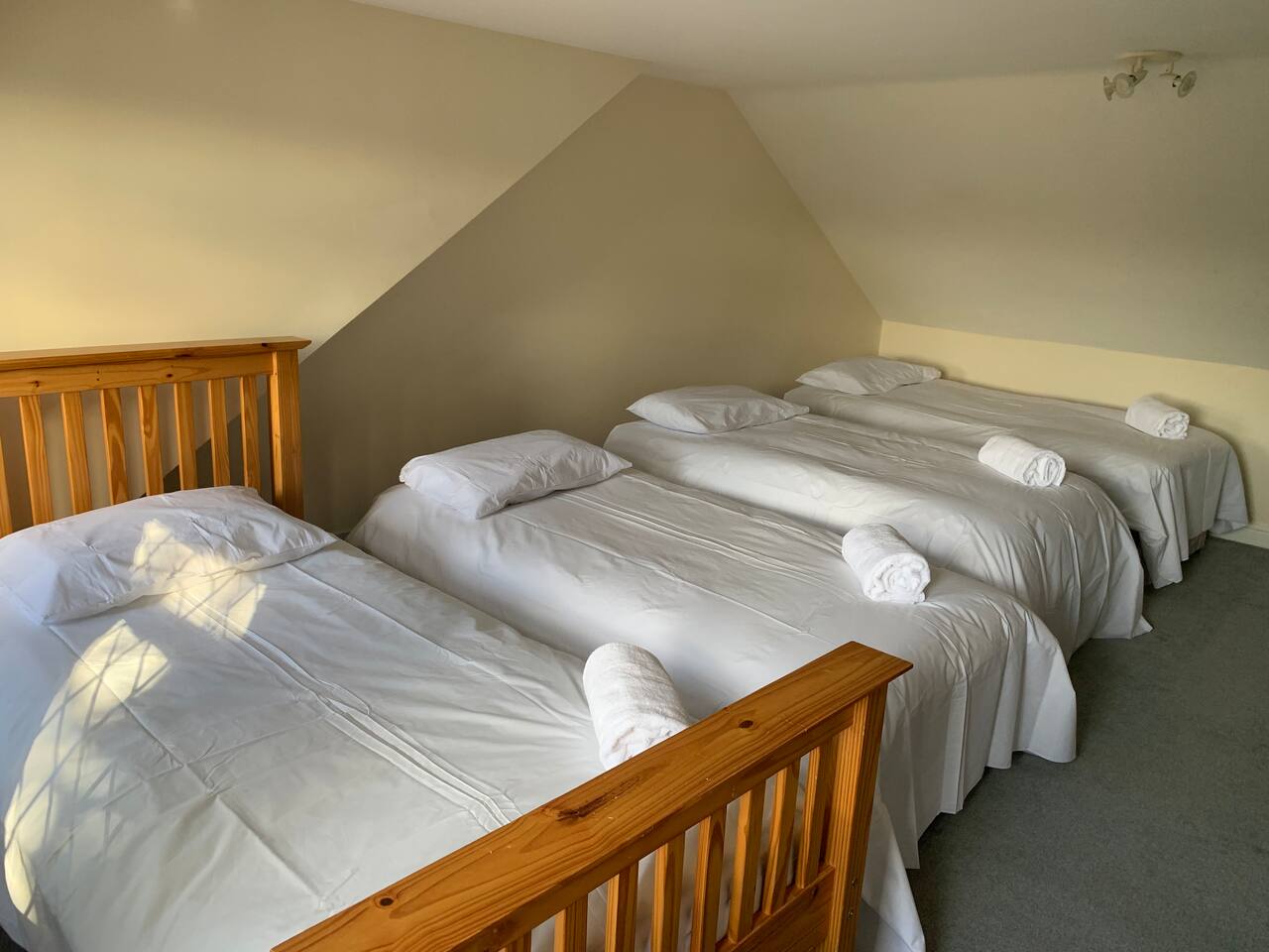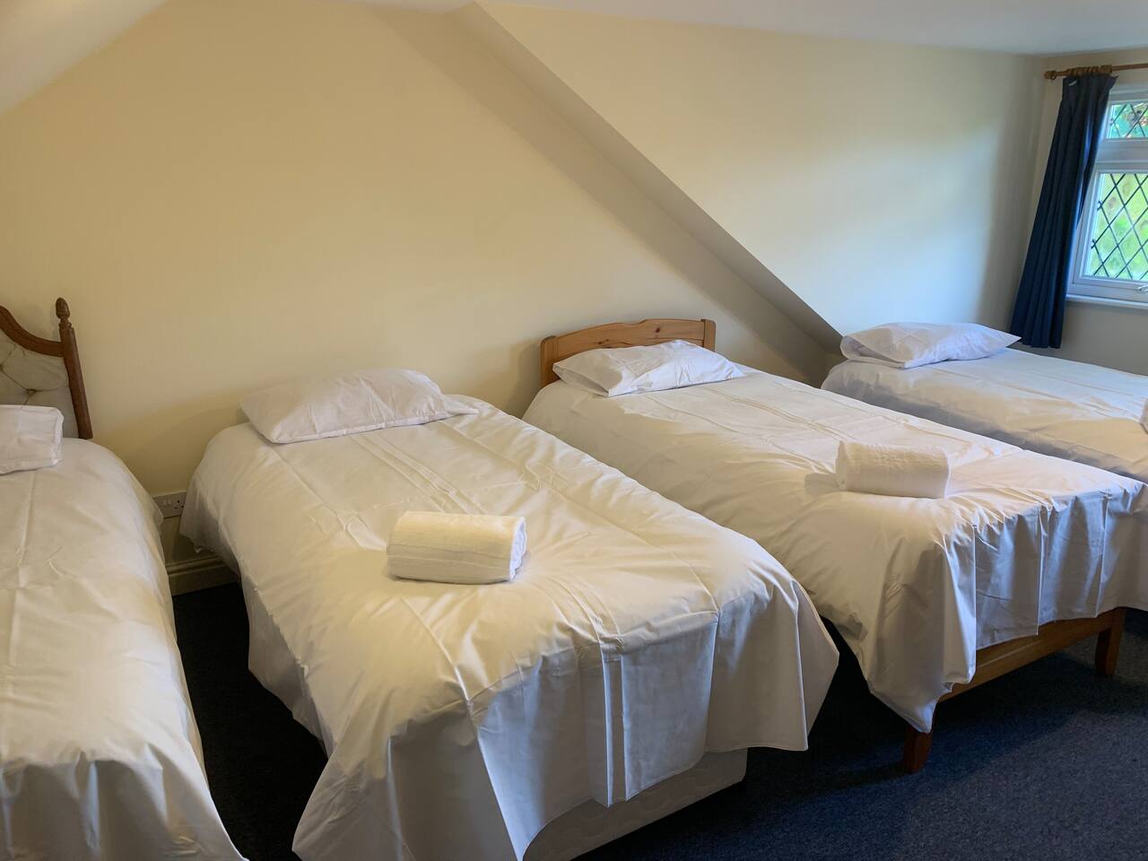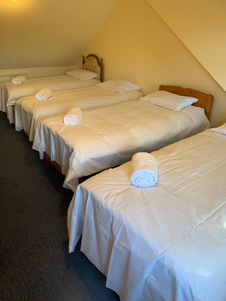 5 double bedrooms and ground floor office used as a 6th bedroom by request. Bed 1- king bed Bed2- double bed Bed 3- twin beds Bed 4- 4 x single beds. (Room 6x 5m) Bed 5- 4x single bed. (Room 6x 5m) Large lounge, large separate dinning room and large kitchen dinner. Ground floor cloak room, separate wash room First floor bathroom with shower over bath, ensuit to main bedroom, second floor bathroom with shower over bath. Yes 4?toilets in the house.